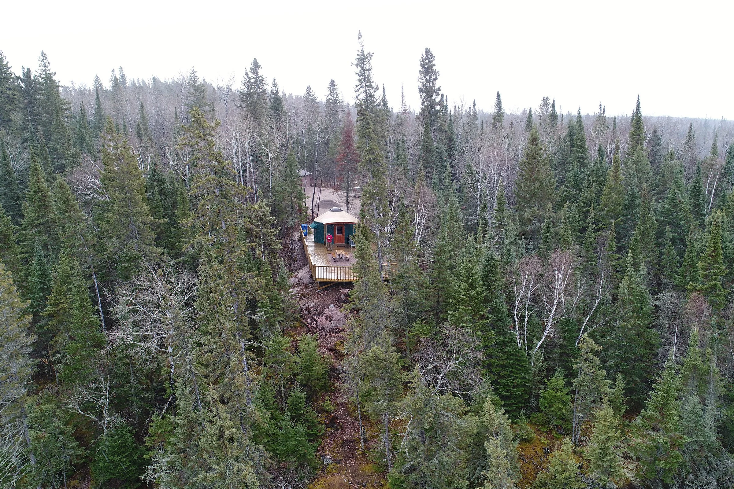 Among untouched wilderness, six yurts are nestled in the forest, along the rocky edge of Bird Lake, and even one atop the edge of a cliff providing a stunning sunset view. Accessible via one to five minute walking trails, visitors are provided wagons to haul in their camping gear, while sleeping and living quarters are provided. Each yurt includes a deck, a cooking surface, a firepit, picnic table and bear boxes. Parking and non-modern washrooms are provided for guest use. The development provides certain accessible and pet friendly yurts. Be sure to bring a flashlight, as the path to the yurts is only illuminated by moonlight after dusk.